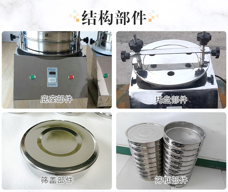 3、把標(biāo)準(zhǔn)篩框按孔徑從小到大,從下到上依次疊放到篩框底座上。